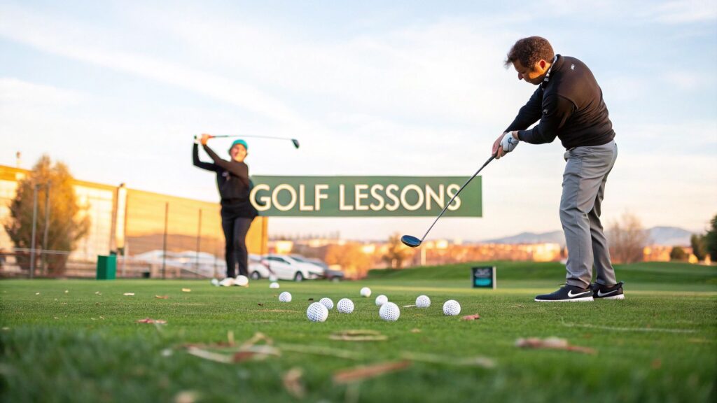 This focused approach is the bridge between hearing instruction and actually seeing real, on-course improvement. For more ideas on structuring your time, check out our guide on effective golf drills and practice routines to make every session count. In conclusion, golf lessons for beginners are vital for anyone serious about improving their game.